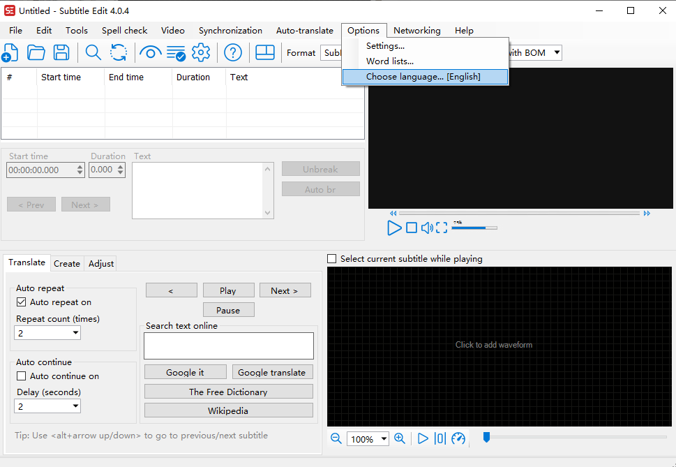 Subtitle Edit是一个免费开源的字幕编辑器,作为一个专门的编辑字幕的开源软件,它支持多种系统,包括:Win7/Vista/WinXP/Win2003/Win2000等,并且可以通过谷歌自动翻译来进行翻译,能加载多种格式字幕,字幕编辑时可以调整显示时间以及添加多种字幕效果,使用起来非常方便。