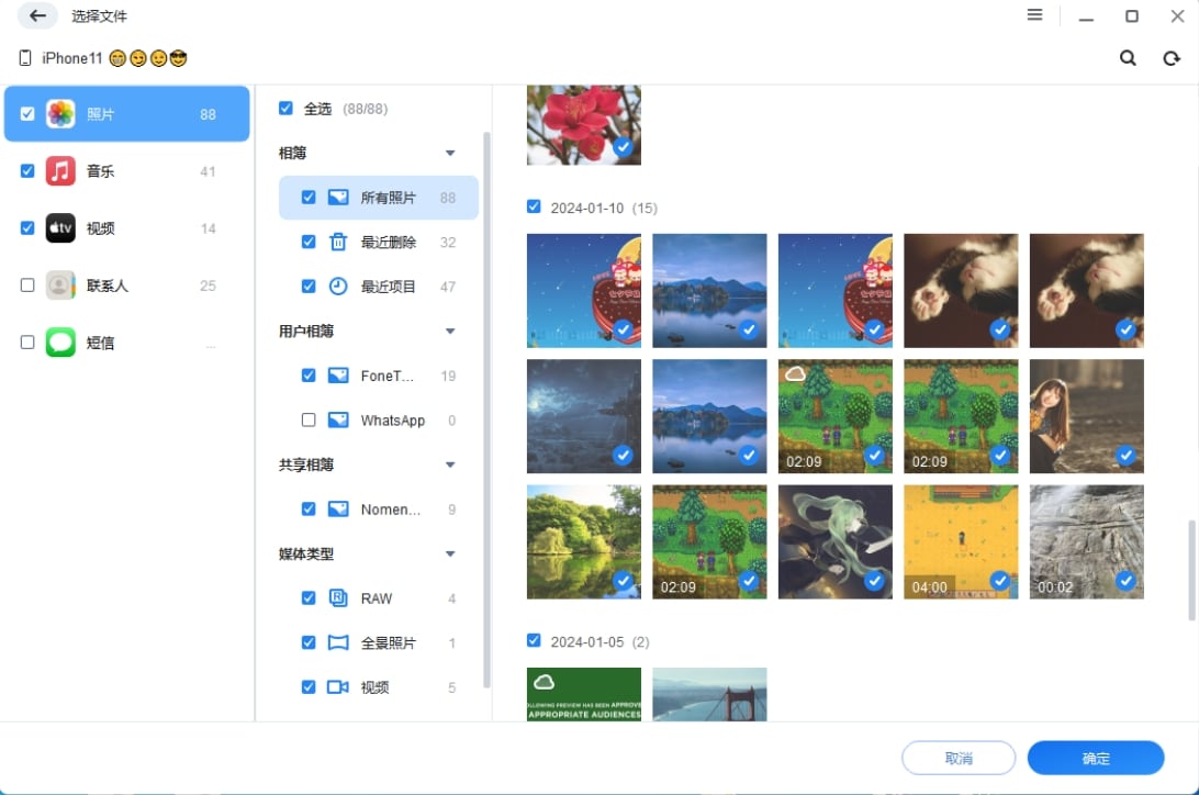 所有格式的iPhone照片都可以轻松备份到电脑,包括相机胶卷、从其他应用程序保存的照片。您可以随时恢复照片。