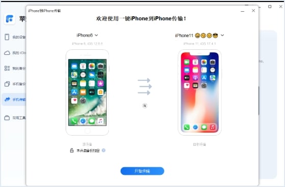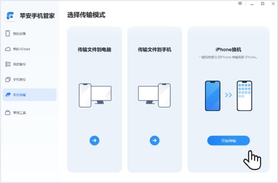 单击“手机传输”选项卡,然后选择“iPhone换机” > “开始传输”