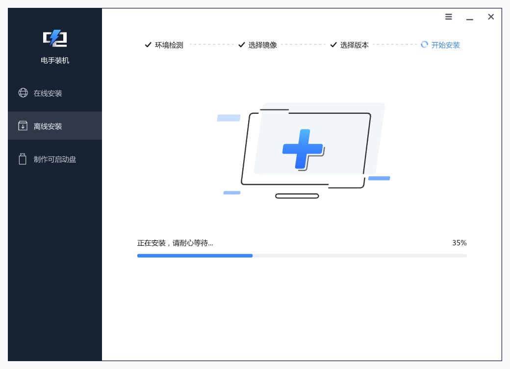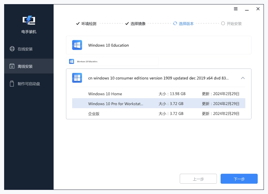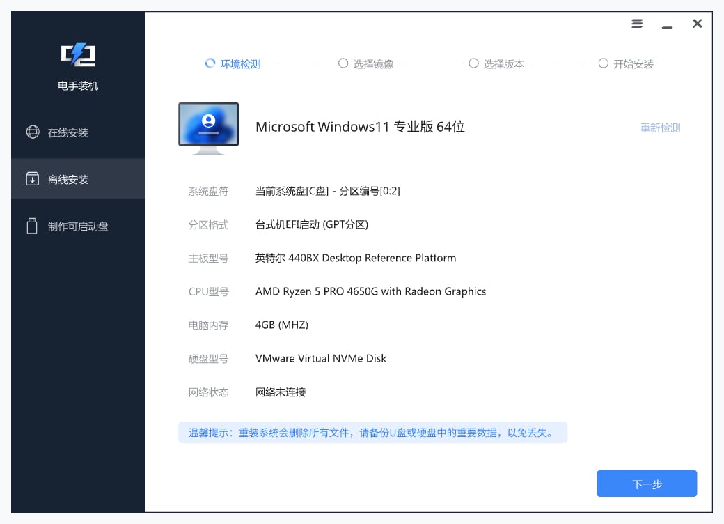 下载安装好软件后打开软件,点击软件左侧的"离线安装"选项,然后点击“下一步”开始“环境检测”。