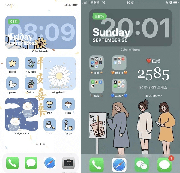 这个时候就可以将之前找的素材(和壁纸风格一致),用作小组件的背景。完成之后的效果图如下: