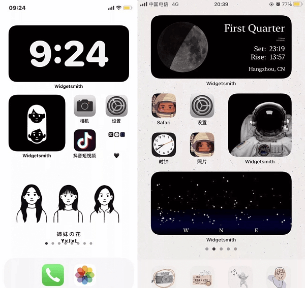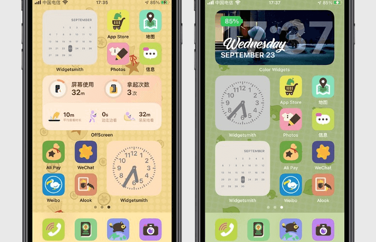 随着iOS 14正式版的推送,新增的小组件功能已经被小伙伴们玩坏了,不仅能自定义桌面,而且还能更改APP图标。话不多说,先来看看几张效果图: