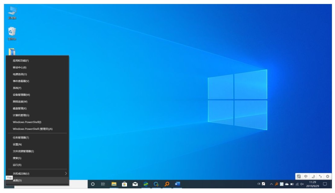 1. 打开 Windows 10 并右键桌面左下方的"开始"按钮,通过单击"磁盘管理",即可打开磁盘管理