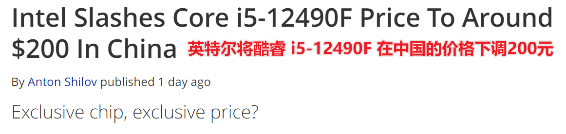 但两天前 Intel 调整了 i5-12490F定价,直降 200 元。加上京东满减促销后到手价 1349元,比原版 12400 还便宜 150 元(首单礼金还能-10元)。本来妥妥的智商检测 U,瞬间变成香香 U,连国网友都开始关注 i5-12490F 降价一事: