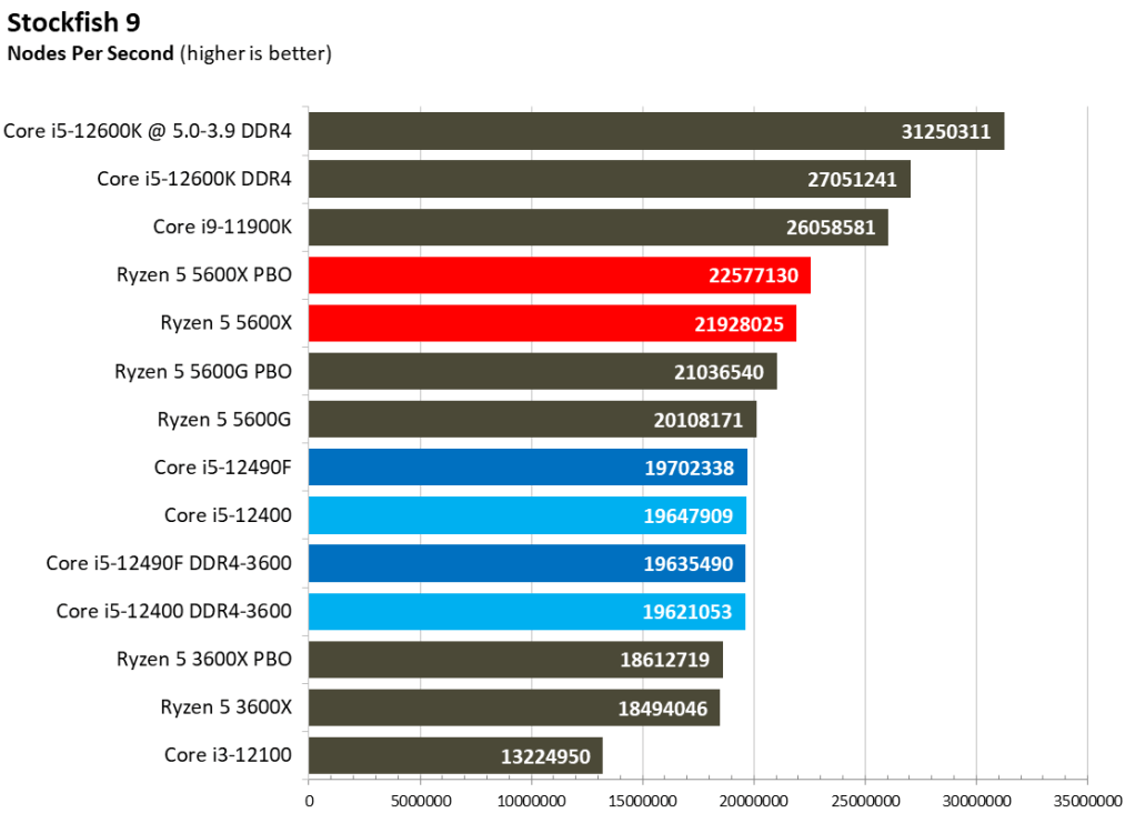 当然,这都是理论数值,从跑分中来看 12490F 和 12400 其实基本上没有什么差距,主要是现在的软件引擎还不足以把这种程度的硬件差异体现出来。